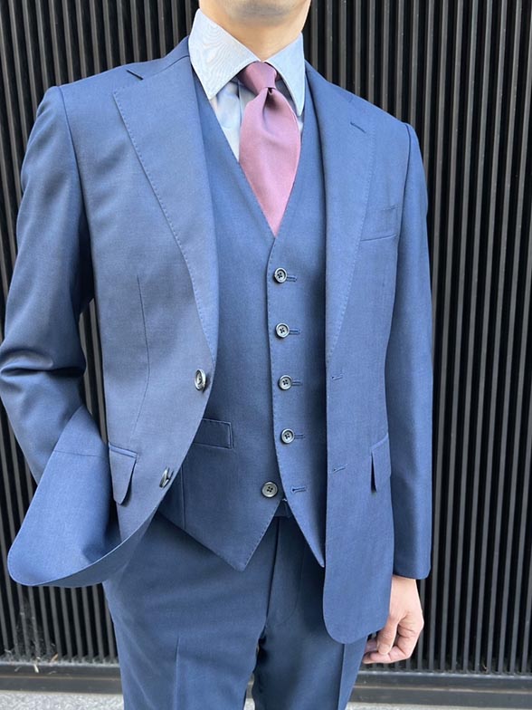 - 取引先との商談などで着用するスリーピーススーツ 静岡駅前店