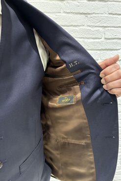 光沢のあるネイビーのスーツが欲しくてお仕立て。