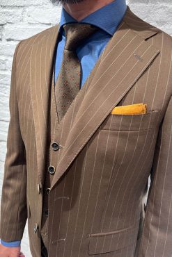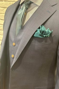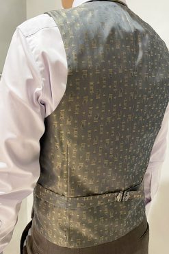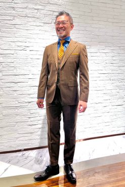襟付きのベストはジャケットを脱いだ際も節度ある装いが出来てオススメです。