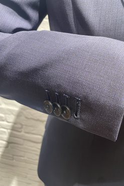 - 正統派のネイビー無地の3ピーススーツ 四条烏丸店