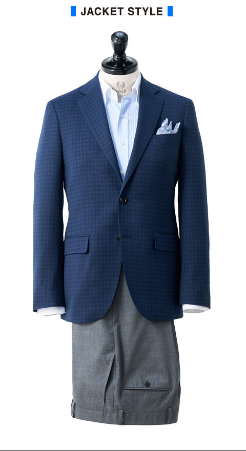 繊細なウインドウペーンが軽さを表現。毎日洗って清潔感をキープ。ライト&ウォッシュスーツブルー/チェック