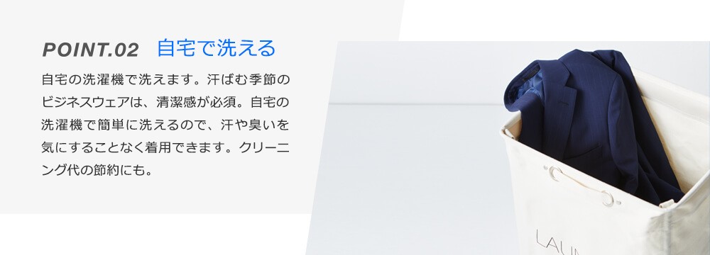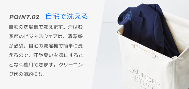 超軽量素材、ストレッチ性抜群。「洗える」にプラスしてサマースーツの
