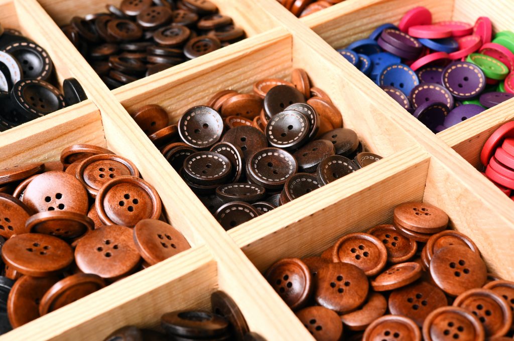 ボタンの色やサイズを選ぶときには、どのような印象のコートに仕上げたいのかを決めてから考えましょう。上品で落ち着いた雰囲気を目指すのなら、ボタンの色はコートの色と同じか同系色に合わせるとシンプルになります。反対にコートの色と対照的な色のボタンにすると、ボタンが目立つようになるので個性的なコートにしたい場合に向いています。素材のよさをそのまま活かした水牛の角や貝、木などのボタンなら、どんなコートにも馴染みやすく、合わせやすいことが特徴です。ボタンを選ぶときには色以外にもポイントがあり、形やデザインも重要です。ボタンにはさまざまな形状があり、表面に糸を通すための穴が見えるもの、ボタンの表面にデザインを施しているものなどもあります。カジュアルにしたいならデザイン性のあるもの、ビジネス用にするならシンプルなものなどコートの用途によってデザインを考えるとよいでしょう。ボタンのサイズを決めるときには、元々ついていたボタンと同じ大きさにすれば問題なく使えるでしょう。ただし、ボタンの形や厚みによってはボタンホールと合わない可能性もあるので、バランスを第一に考えましょう。ボタンホールに対してボタンが大きすぎるとスムーズにかけられないですし、ボタンが小さすぎると外れやすくなってしまいます。見た目にこだわりすぎて、実用性を欠いてしまわないよう気を付けましょう。
