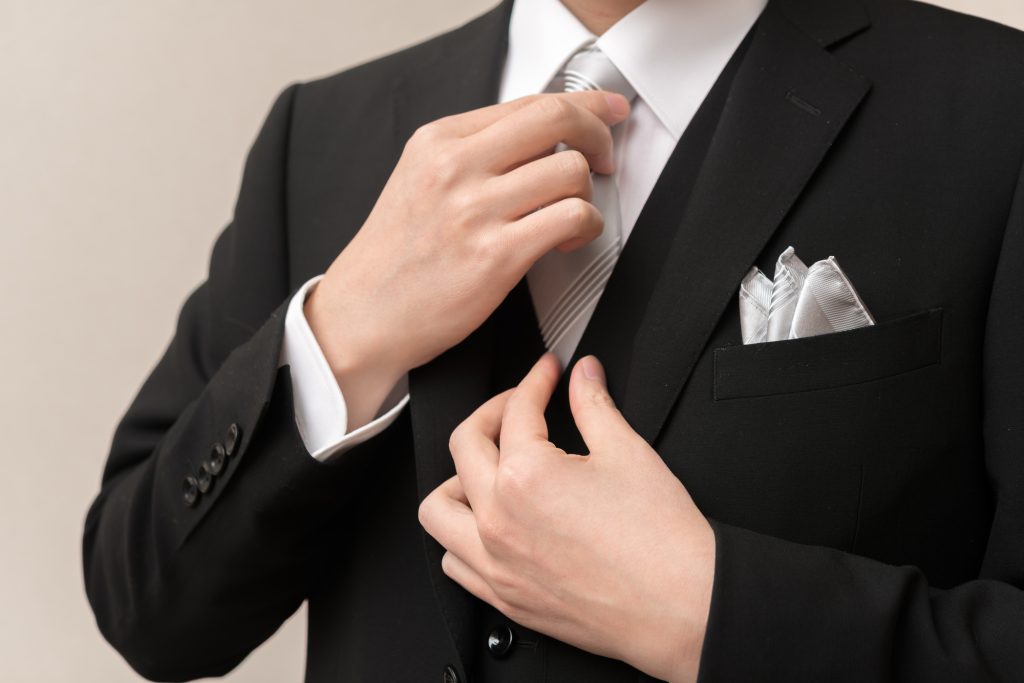 逆に、黒いネクタイは結婚式の雰囲気に合わないばかりか、一般的に通夜、葬式、法事などの弔事用とされているため、失礼に当たります。間違っても結婚式のネクタイに黒を選ぶことはないようにしましょう。