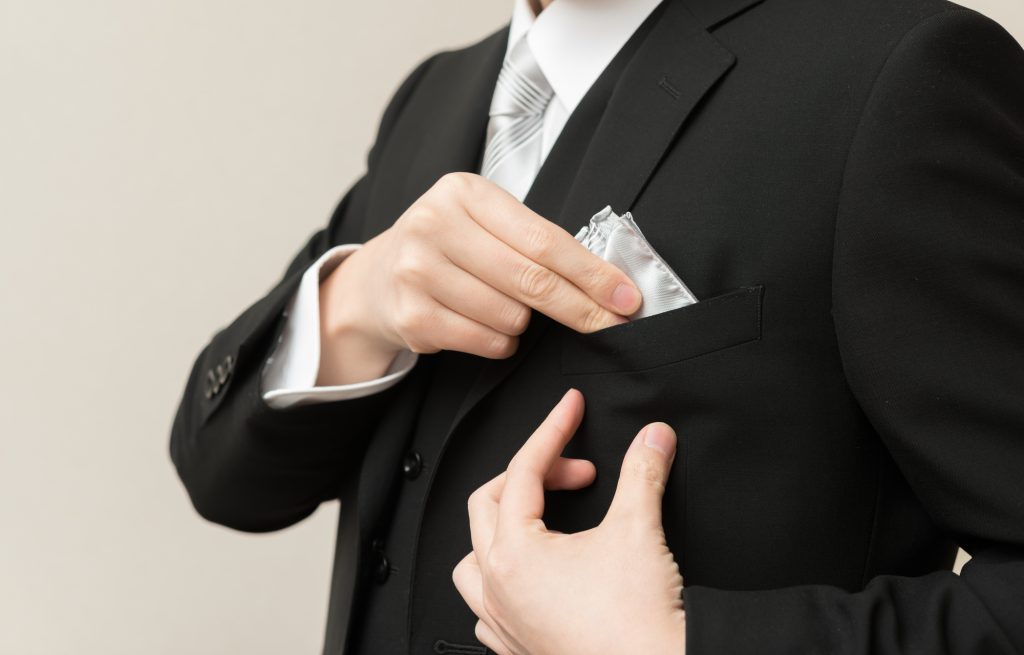 フォーマルファッションの印象が強いポケットチーフですが、デザインの選び方によっては、カジュアルなファッションに取り入れることも可能です。しかし、素材や色のバリエーションが多く、慣れないうちはどのように組み合わせたら良いのかがなかなか分かりません。そこで、まずはポケットチーフの基本的な素材と、適切なシーンを把握することが重要です。冠婚葬祭にはスーツなどの礼服がふさわしいとされているように、ポケットチーフの素材にもある程度の決まりがあります。