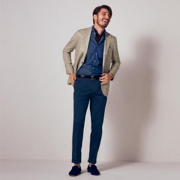 当店はテーラーらしい本格的なジャケットだと自負しています。またご覧いただくと楽しくなるような生地を種類多く取り揃えています。ぜひジャケットらしい生地感や色柄の物を挑戦し、カッコいいジャケットスタイルをお楽しみいただければと思います。