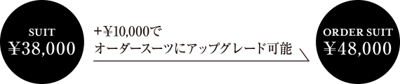 サイズが合わない方には現物を見ながらプラス1万円でオーダースーツとして仕立てることができるので、仕上がりをイメージしやすく、安心して購入できます。オーダースーツとして仕立てた場合も、納期は約2週間なので、既製スーツのお直しに時間も費用もかかる方には特におすすめ。