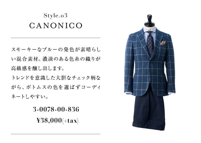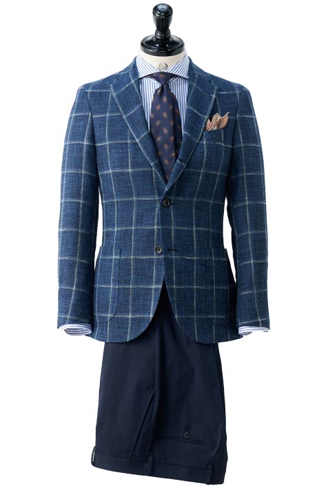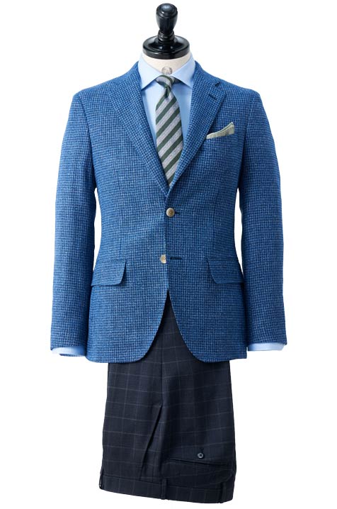 - SUPER100’sの原毛を使用。トレンド性あふれる色柄がMARZOTTO社ならでは。凹凸感がありデニムルックな見え感が新鮮です。近づくと柄が浮き立つ絶妙な表情と、インポートならではの風合いは格別です。