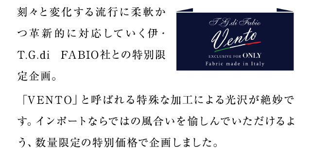 既製品とオーダースーツの両方に力を入れているオンリーだからこそできる「ほかにはない」人気シリーズです。