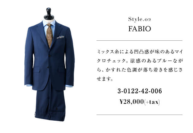 厳選されたインポート生地を、丁寧に仕立てた既製スーツのコレクション。