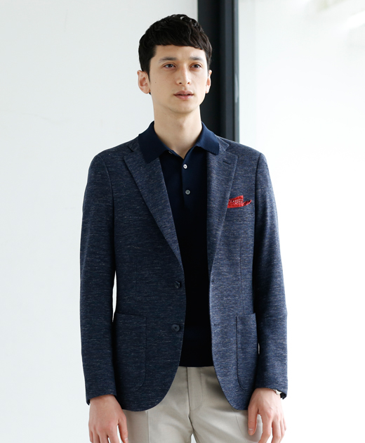 ジャージーとはいえ、オンリーが考えるジャケットはあくまで大人がオンタイムに使える一着であることが基本。リラックスした着心地ながら、しっかりタイドアップで装えるのです。