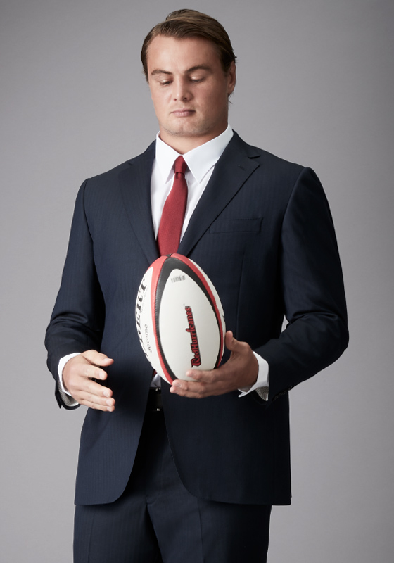 チームのスローガンは”Believe”。トップリーグ上位進出に向け、自分自身を信じ、互いに信じ合い、そして個々が成長し自信を勝ち取る。そんな夢をもって、日々練習に励んでいるラグビーチームをスーツを通じて応援します。