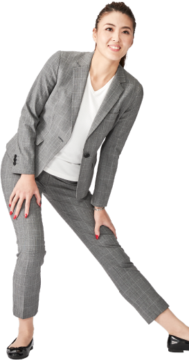 伸縮素材の特徴を生かしたストレッチスーツ。アクティブなビジネス使いにも適切に設計されています。
