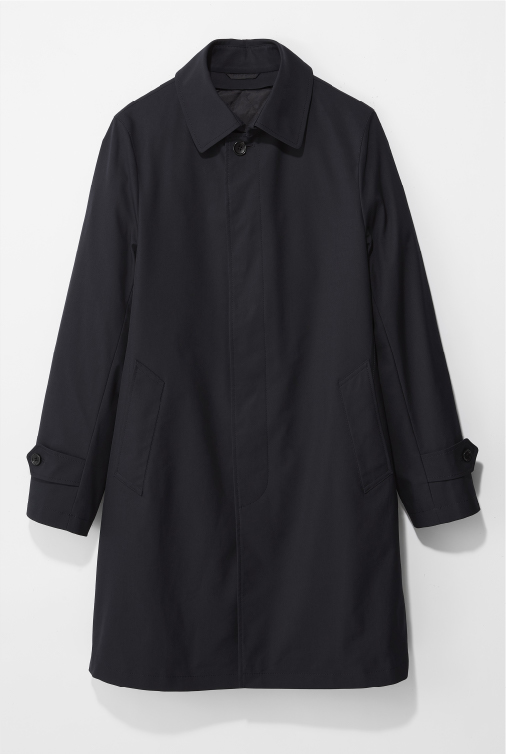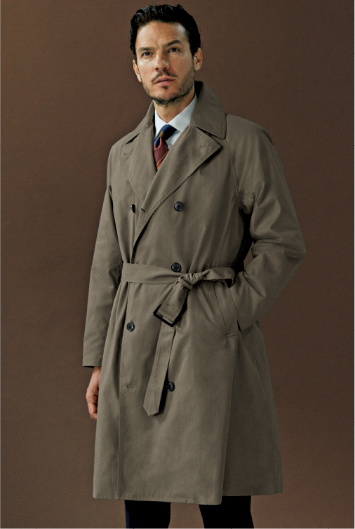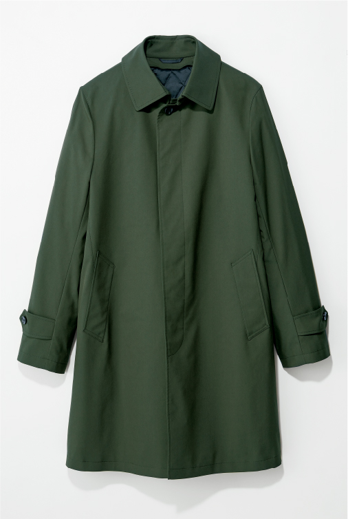 上質ギザコットンに機能素材ソロテックスをブレンドし、動きやすく高級感ある表情のステンカラーコート。着脱式ライナー付きです。