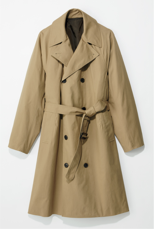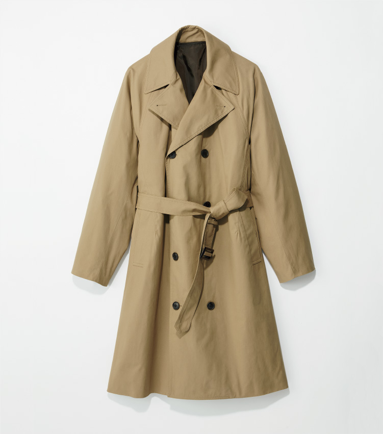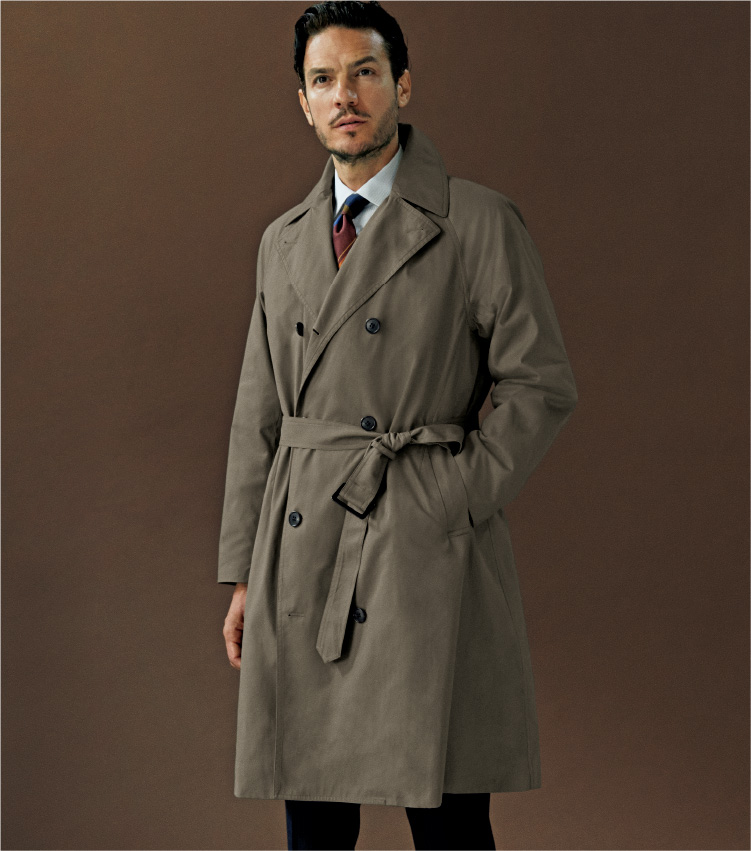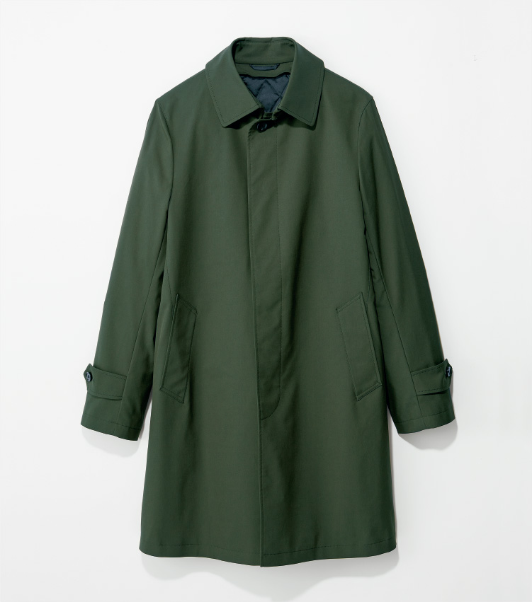 男の定番トレンチコートは、スーツはもちろんジャケパンからカジュアルまで着回せるのが利点。オンリーの新作はトレンドであるオリーブカラーながらグリーンが強すぎず、エポレットやガンフラップなどを省略した端正なデザインにより、ビジネスシーンでの着やすさを追求。程よくゆとりのあるシルエットも現代的です。また着脱式ライナー付きでロングシーズンに対応します。