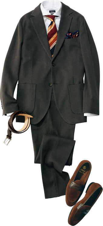 今季トレンドであるブラウンスーツ。伸縮性に優れるコットンジャージーのアンコン仕立てゆえ、シックな見た目に比して着心地は軽やかです。また絶妙なメランジ調で表情が奥深く、スーツとしても単品使いも着こなしやすさが考慮されています。