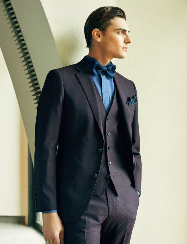 親しい友人が集まる席に、フォーマル過ぎる装いはどこかよそよそしいもの。ダイヤゴナル織りのシルクブレンドスーツを、シャンブレーシャツとボウタイでハズせばパーティがもっと楽しめそうです。