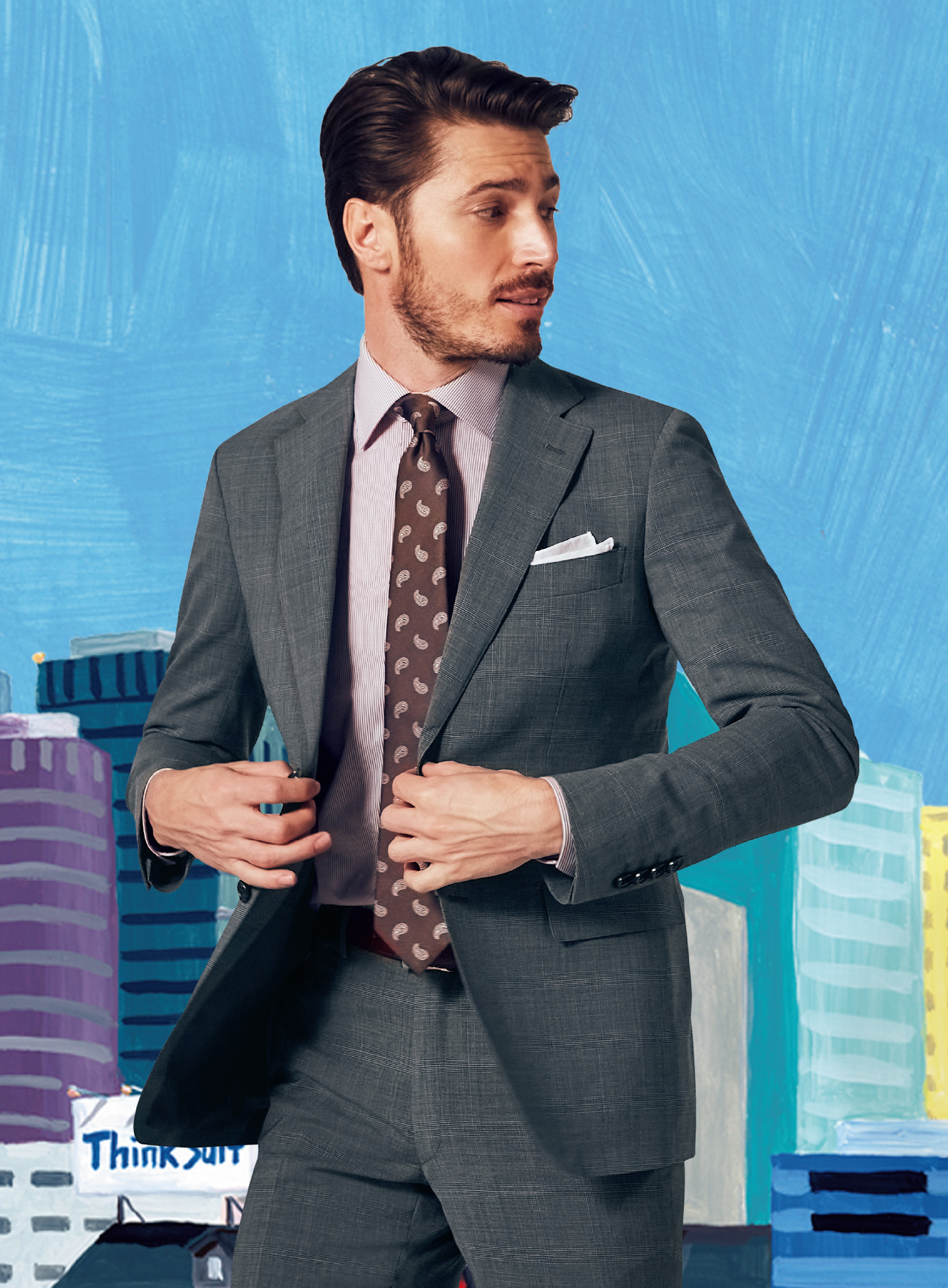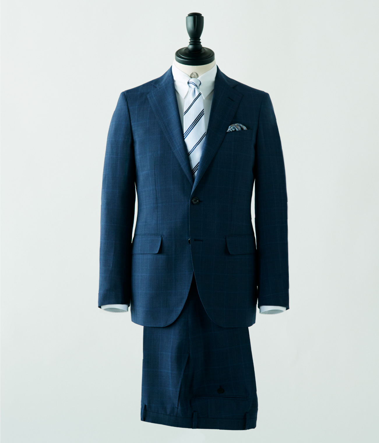 クラシックな装いを感じさせるグレンチェック柄の夏スーツ。通気性に優れドライタッチな生地のため、盛夏に最適な一着です。