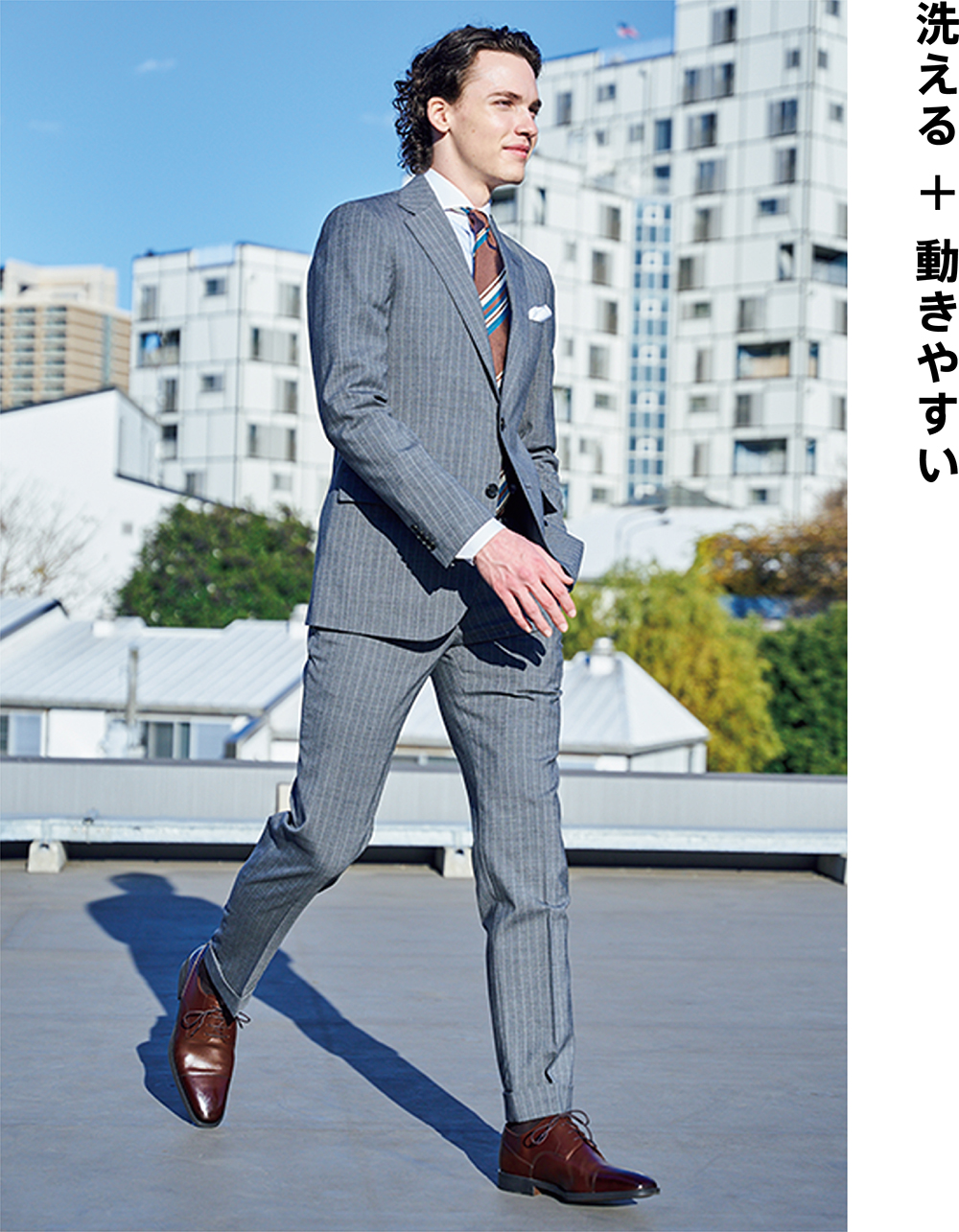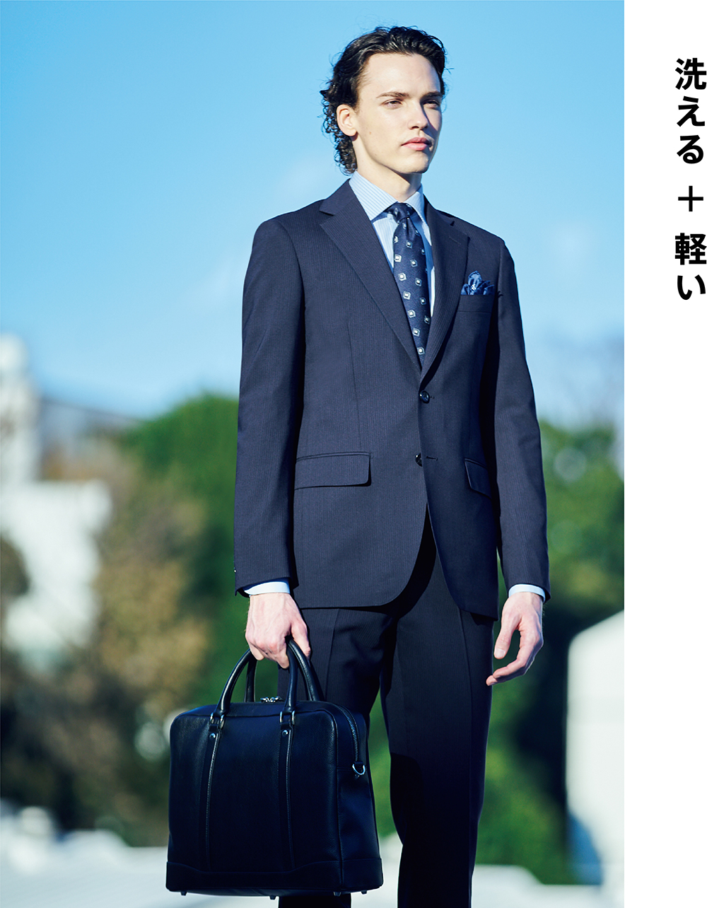 水洗いやストレッチといった従来のホームウォッシュ機能に加え、1m辺りの重さが約190gという超軽量生地を採用。まさに空気を纏うような着心地が体験できる、盛夏向けのニューモデルです。