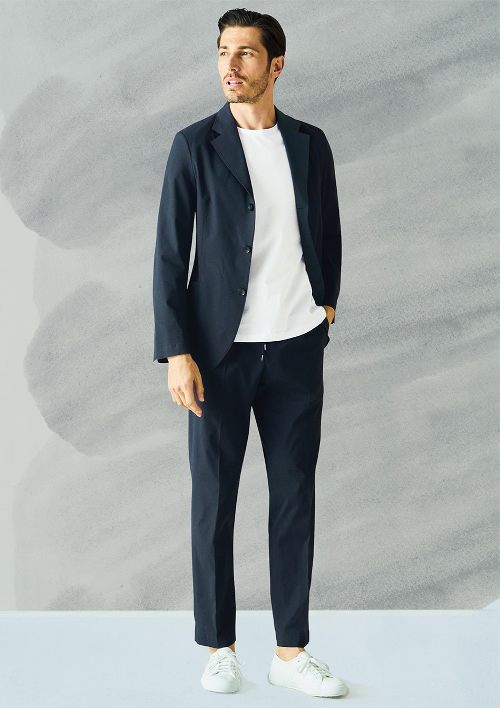 ジャケットやスーツのインナーに、Tシャツを合わせる着こなしが当たり前になった現在。そんな時代に応えてオンリーが開発したのが、ジャケット&スーツ専用の「テーラーズ T」です。テーラーならではのノウハウを駆使し、美しく快適に着こなせるTシャツをぜひお試しください。