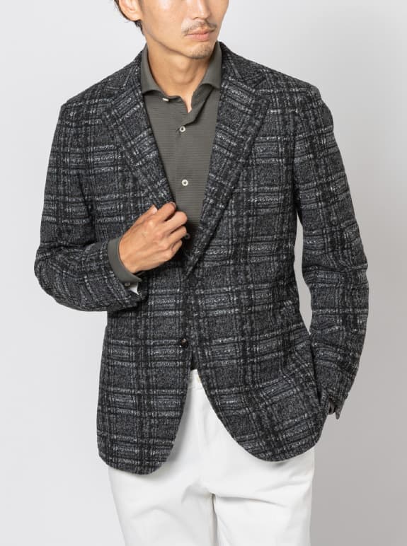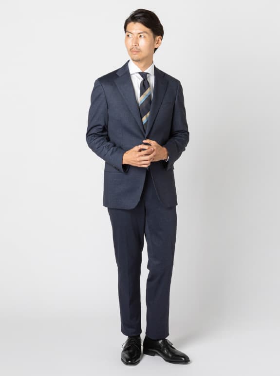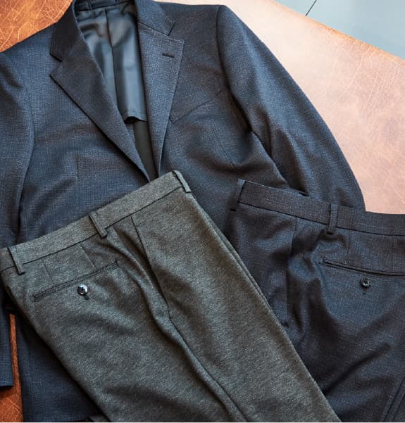 名前のとおり、ストレッチ性と柔らかさに優れたジャージー素材を採用し、スーツ・ジャケット・パンツ・シャツと幅広いアイテムを展開しています。