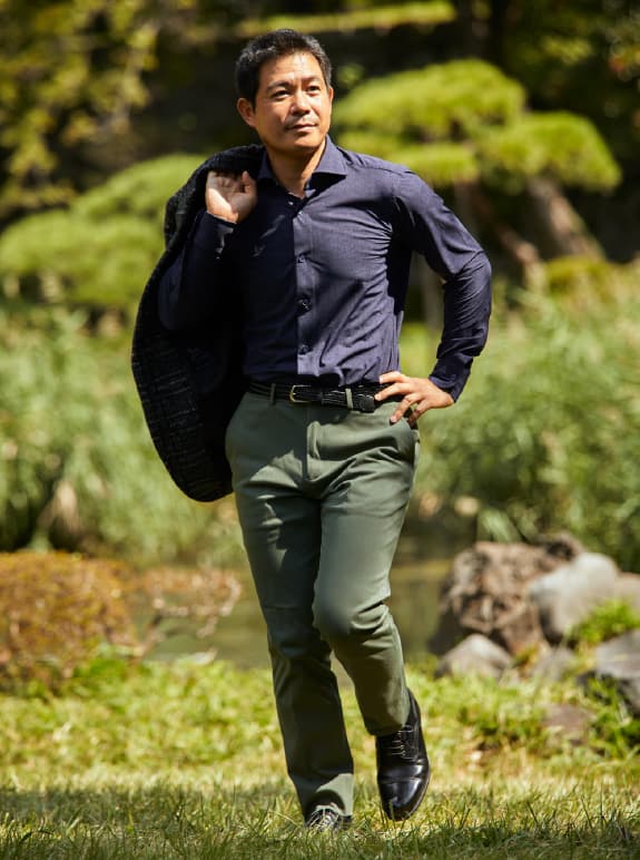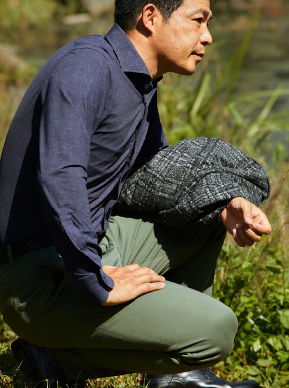 「このシャツとパンツも非常に着心地がいいですね。フィールドワークへ出かけるとき、今までは普通のワイシャツとスラックスがお決まりだったのですが、それだとどうしても動きは制限される。そのストレスから解放されたような気持ちです。シャツもパンツもきちんとした印象なので、人と会うときでも失礼にならないところも気に入りました」 -