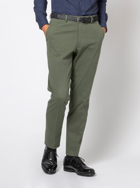 「ジャージージャーニー」コレクションでは、ビジネスカジュアルに活用できるアイテムも展開しています。実はシャツ・パンツ・手に持ったジャケットはすべてジャージー素材。