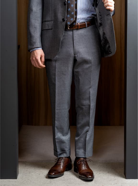 日本で鳥目織りとも呼ばれる柄は、小鳥の目のように見える柄が特徴。異なる2色の糸で織られた生地は、光沢が抑えられたマットな質感が持ち味です。主張が控えめなチェック柄はビジネススーツの柄としても最適。