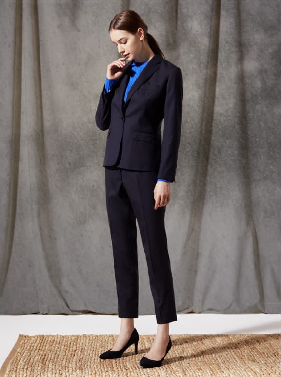 ウール100%生地の生産段階で特殊な加工を施すことで、ストレッチ性を高めていますので、快適な着心地です。