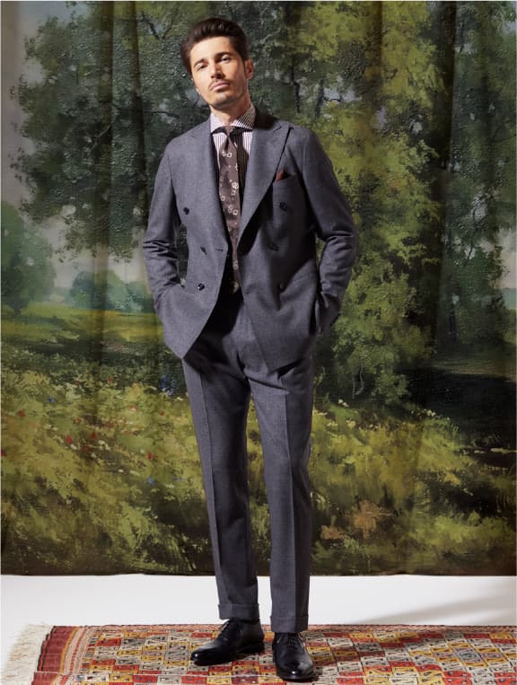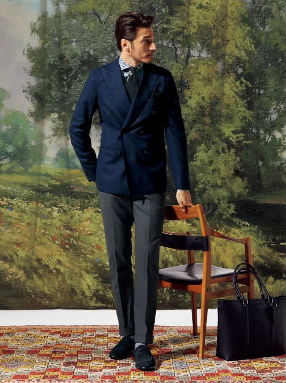 かっちりしすぎない程よいドレッシーさと驚くほど軽い着心地の「サンタルチア ゼロ」。あらゆるビジネスシーンで品格と快適さを享受でき、着回しも可能な新時代のスーツです。