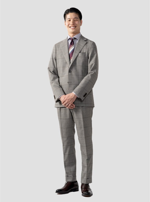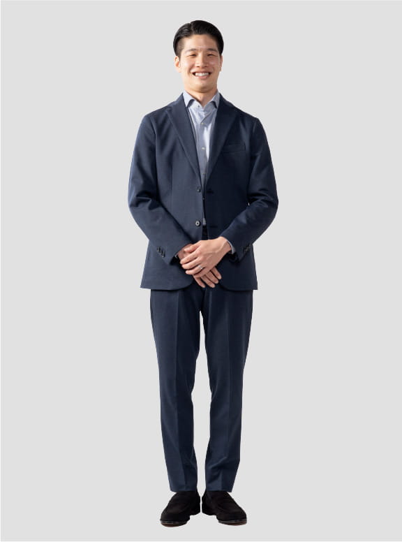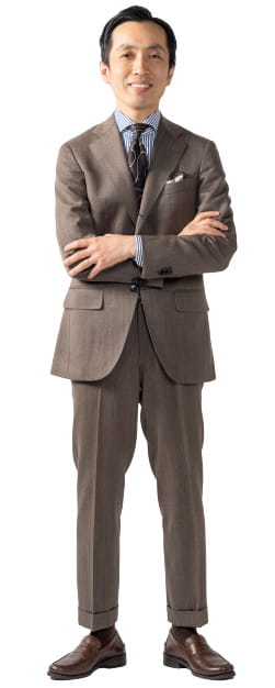 太田雄也社歴17年、現在は事業本部にて販促を手がける腕利き。豊富な服飾知識を持ち、着こなしルールやドレスコードにも精通する。小麦色の肌の理由はアウトドア。週末は山で本格キャンプを楽しむアクティブ派でもある。