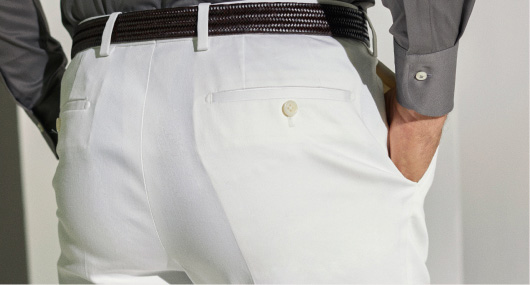 春夏には揃えたい白パン。下着が透けにくい組織に加え、撥水&防汚加工で気になる汚れ対策も◎。