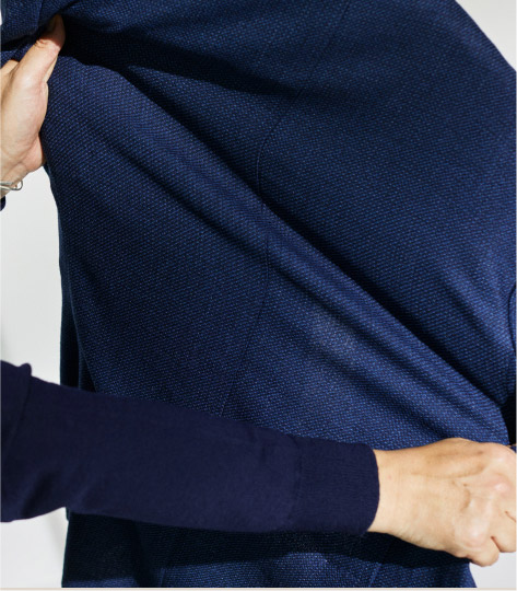 今季ジャケットの中心となる「サンタルチア」モデルは、首から肩にかけてなだらかにドロップする、立体的で色気のある肩周り。日本人に多い前方に張り出した“前肩”と呼ばれる体型にも美しくフィットし、肩パッド不使用で窮屈感もなしです。