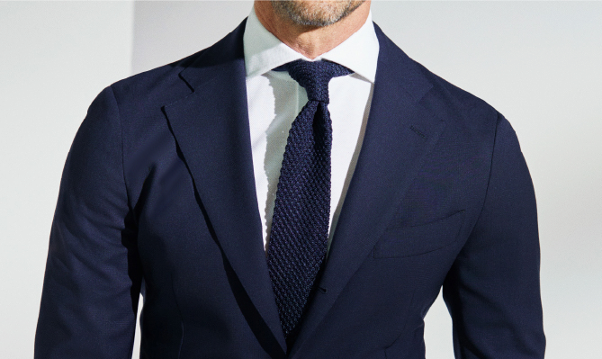 立体的な肩や首元にきちんと収まる襟周りの仕立てにより、タイドアップがきまってフォーマル度もアップ。