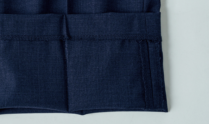 裏側から樹脂加工を施すことで、半永久的に消えない強力クリースを採用。薄手でもきちんと感を保てます。