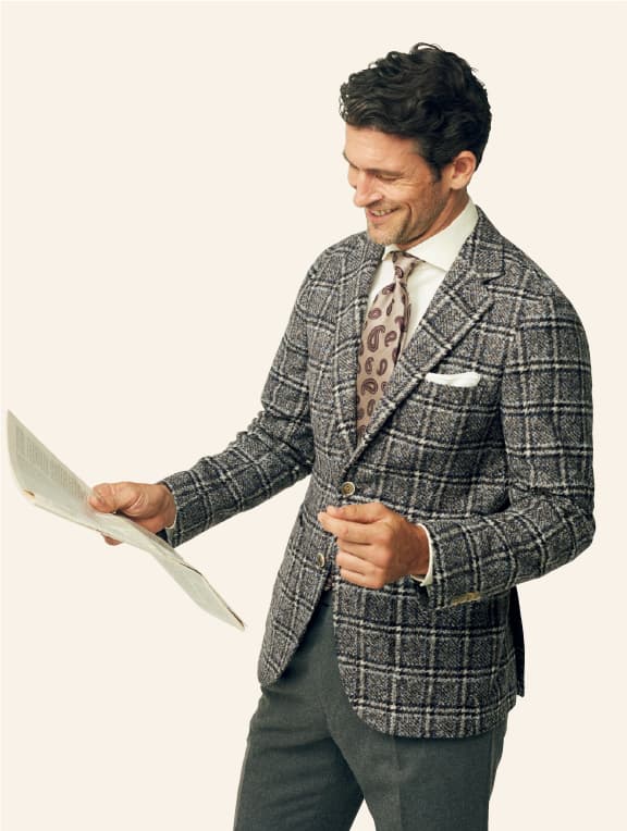 最低限の芯地のみで仕立てることで、窮屈感のない軽量かつ柔らかな着心地が味わえる、オンリー初の本格的アンコストラクテッド(非構築的)モデル「サンタルチア」。完成以来、進化と発展を続け、いまやオンリーを代表するモデルとなりましたが、さらなる発展型として2023年秋冬に提案するのがピークドラペルバージョンです。アンコン仕立て発祥の南イタリアを意識し、ややラウンドした男らしいワイドピークドラペルを採用。普段のビジネスシーンに加え、結婚式やパーティなどのセレモニーにも対応するフォーマルテイストを備えています。