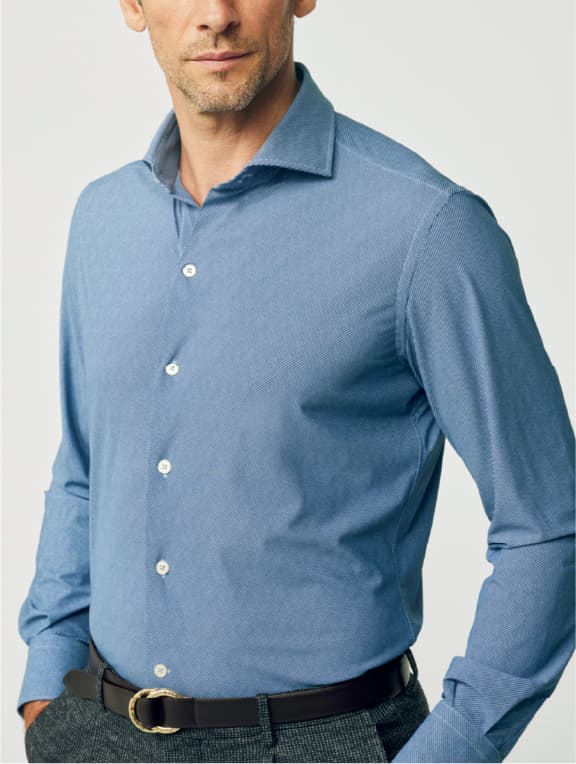 ラインナップが拡大抜群の伸縮性を備えるナイロンジャージー製ドレスシャツ。