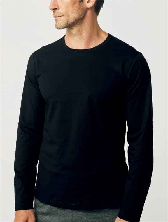 ¥5,280 秋冬のインナーにぴったりのロングスリーブジャケットにすっきりバランスよく収まる、好評のテーラーズTシャツ。秋冬に最適なロングスリーブモデルは白、黒、ネイビーの3色展開。
