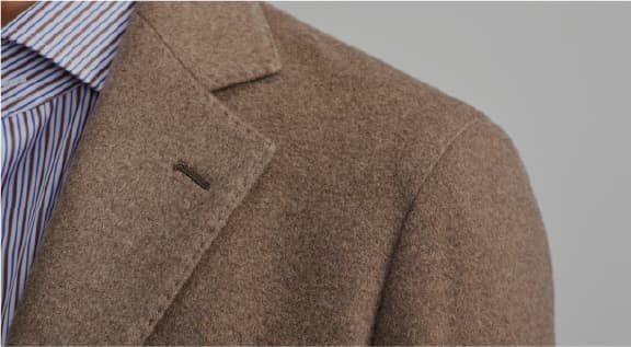 軽い着心地と抜け感を演出高度な技術力を備えたスーツ工場によるアンコン仕立てにより、軽量で柔らかな着心地を追求。肩パッドなしで抜け感があり、リラックスした大人の余裕が漂います。かっちりしすぎないので、ジャケパンやカジュアルスタイルへも着回しやすいはず。