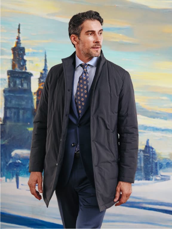 最新のテクニカル素材で快適に過ごせる中綿シリーズの高機能コートでコンテンポラリーなビズスタイルを