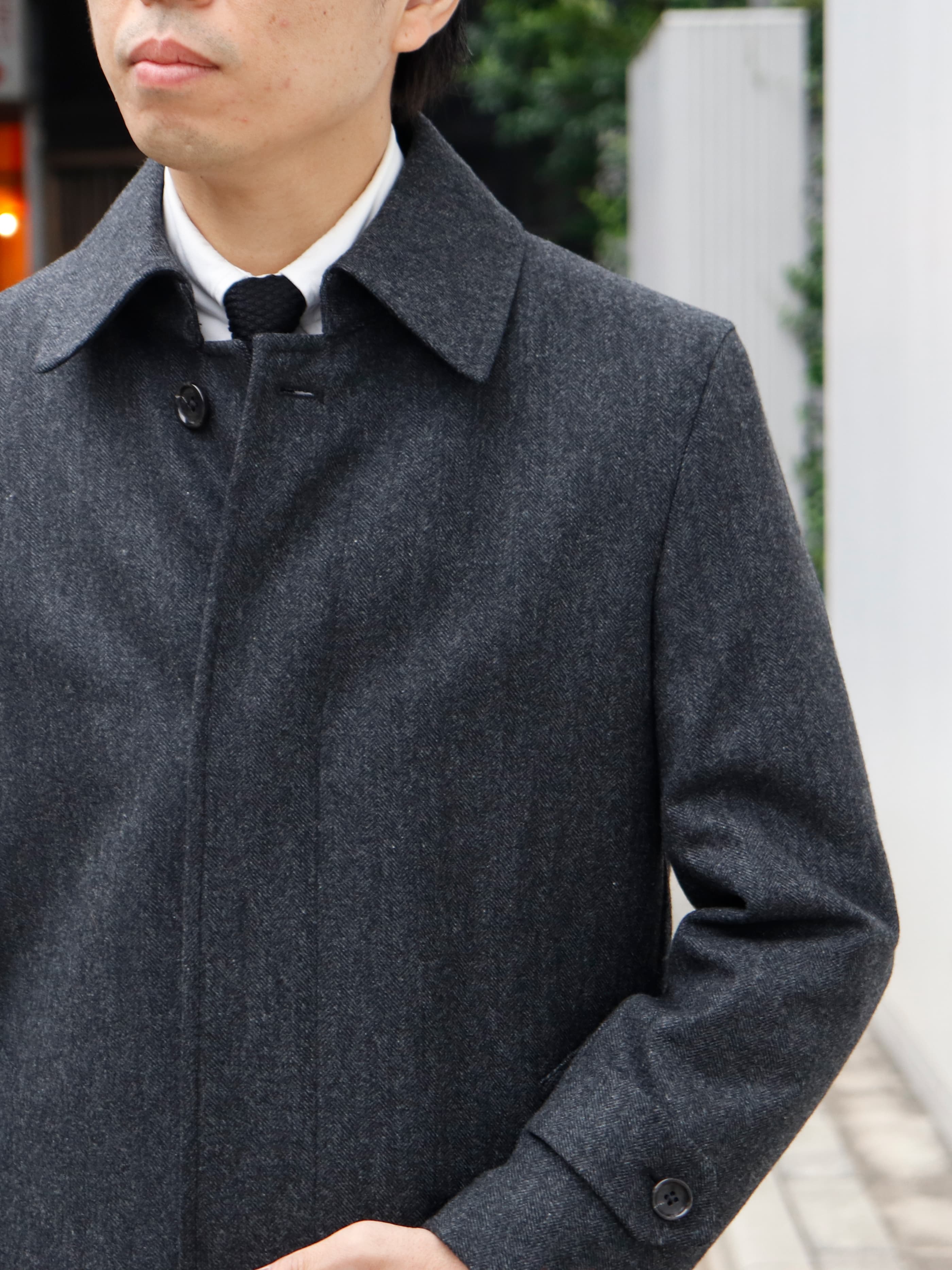 ラムウール素材のステンカラーコート。スーツやジャケットに合わせ、定番のオンスタイルの装いを演出。