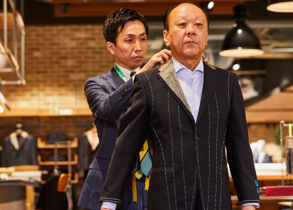 ーーお褒めいただきありがとうございます。そして、今回は当店で初めてオーダーメイドをご体験いただきました。接客を担当したのは、売上No.1の実績を持つ中田総店長。オーダーの際はどのようなコミュニケーションをしたのですか?