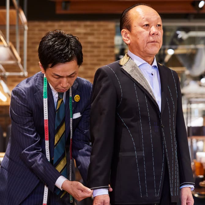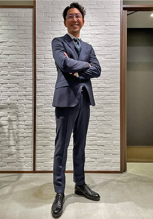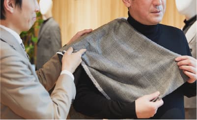 オーダースーツは人との繋がりが特に大切です。カタチがないモノを、お客様が思い描くカタチに私共が仕上げるために、丁寧にヒアリングを行います。色々なお話をして、“一緒に作る”という感覚を味わっていただきたいです。