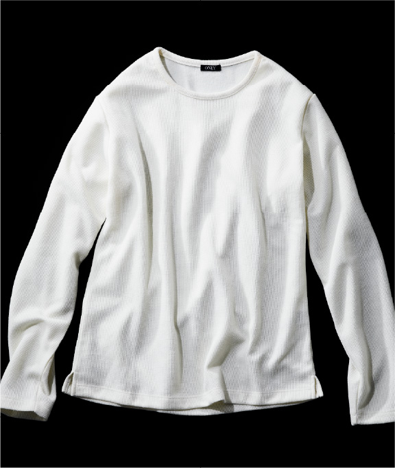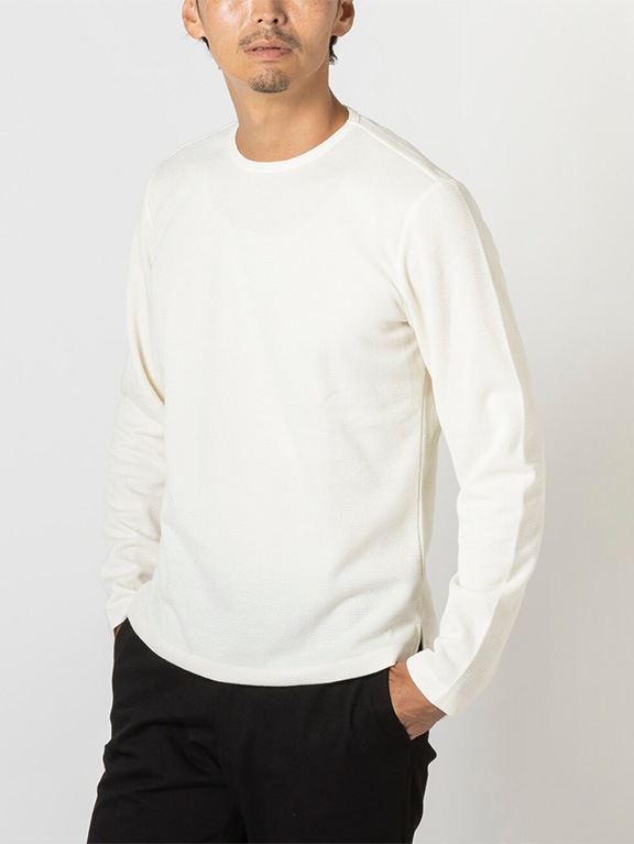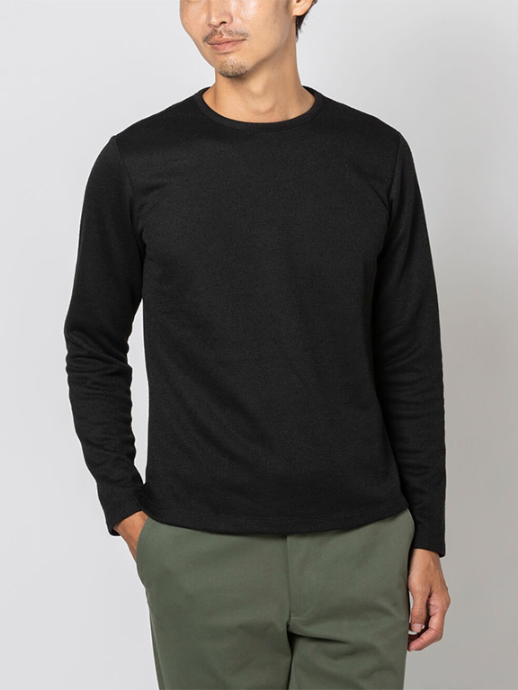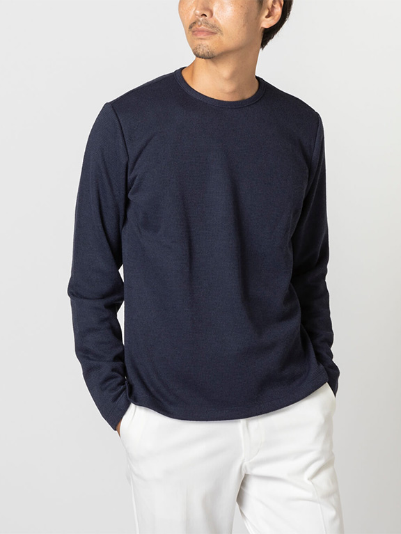 ニットライクなジャージー素材ゆえ、家庭での洗濯機洗いが可能。意外に汗をかく秋冬も清潔感を保てます。