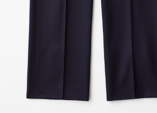パンツのシルエットはストレートもしくはフレアから選択可能。今回は使いやすい股上深めのワンタックのストレートをチョイス。フレアもトレンド感があっておすすめです。