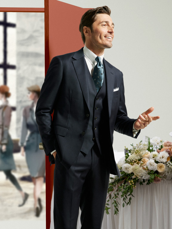 他にも成人式や子供の入学式など、多様なカジュアルセレモニーに活用可能。まるで扉を行き来するように、ビジネスとセレモニーを簡単に切り替えられる、これまでにない実用的スーツをぜひお試しください。