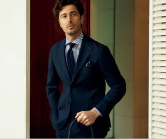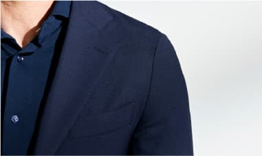 伝統的なイタリアの仕立てを手本に、独自に発展させたオンリーの仕立て。首元に美しく沿う一枚襟や立体的な肩周りにより、凛々しく見えます。