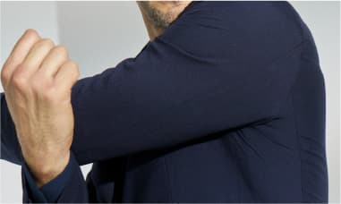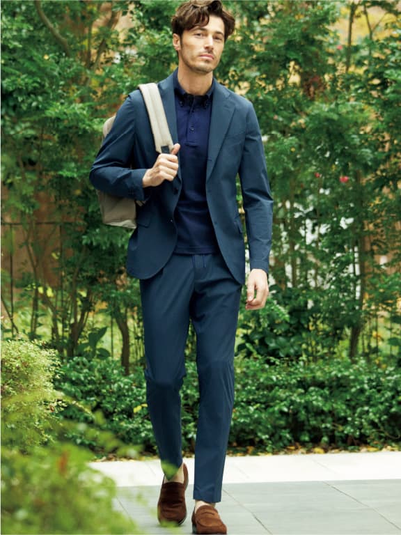 窮屈感がなく動きやすい、ストレッチ性を備える生地を採用。ノンストレスな着心地で一日着用していても疲れにくく、シワに強いのも利点です。