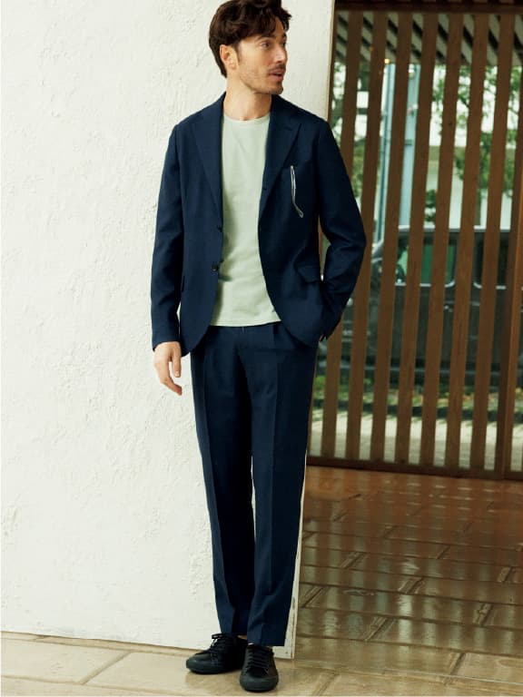高機能ながらもウール特有の上品な光沢や高級感を備える生地を厳選。快適さときちんとしたドレッシーさを両立させるオンリーのこだわりです。