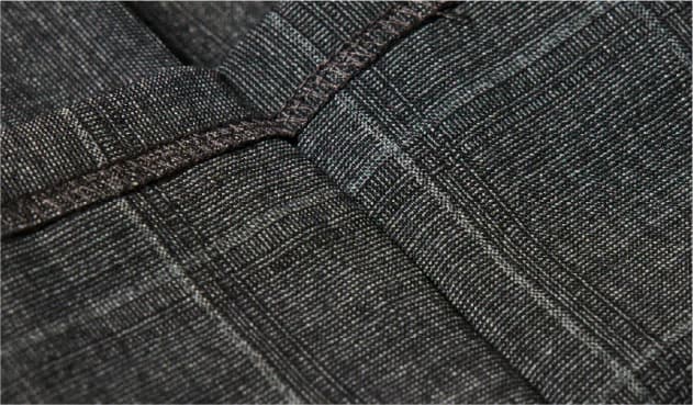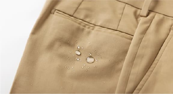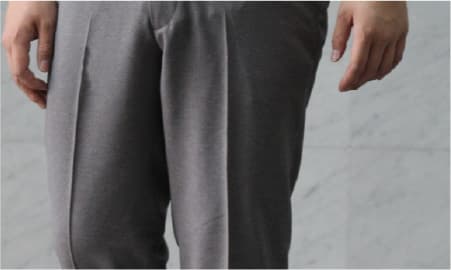 クリースを半永久的にキープレングスの裏側より樹脂加工を施すことで、センタークリースをキープする半永久クリース。どうしてもクリースが消えやすいストレッチファブリックの弱点を補い、日々のアイロン掛けからも解放されます。